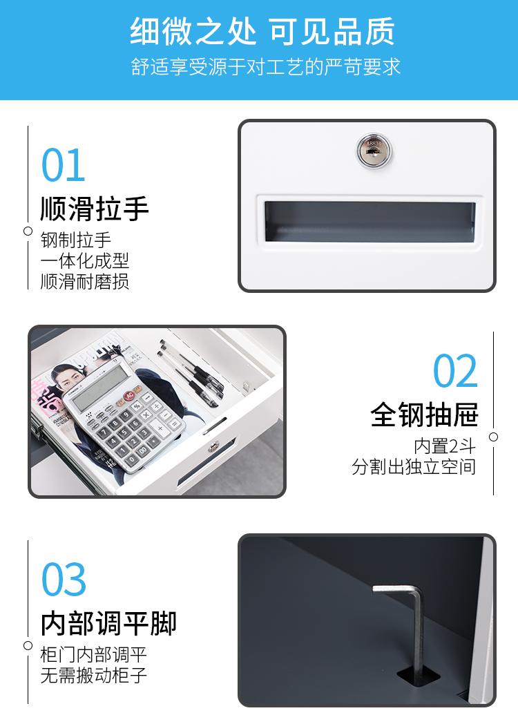 安全性强 采用优质冷轧钢板经剪切,冲压,折弯,焊接,装配等九工位精制而成 采用自动喷淋式磷化 粉末静电喷涂,涂膜不易脱落,环保耐用,无毒害,无气味,光洁美观 外观精美,安全系数良好