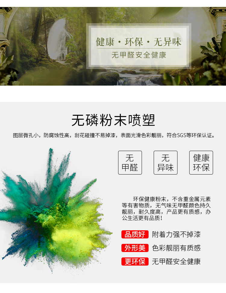 多色可选+超大空间+承重性强 采用优质冷轧钢板经剪切,冲压,折弯,焊接,装配等九工位精制而成 采用自动喷淋式磷化 粉末静电喷涂,涂膜不易脱落,环保耐用,无毒害,无气味,光洁美观 外观精美,安全系数良好